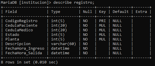 Realizar el diseño e implementación de una base de datos que guarde información de los pacientes que ingresan en un hospital. En este hospital, los pacientes que llegan al servicio de urgencias del hospital son examinados y, dependiendo de su estado de salud, son ingresados en la planta correspondiente (traumatología, cuidados intensivos, ...) bajo la supervisión de un médico responsable: