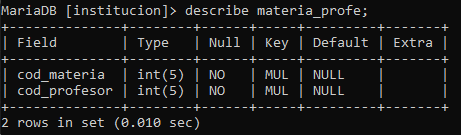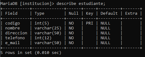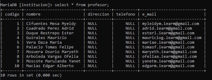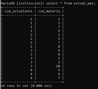 También se debe almacenar la información del docente(código, nombre, teléfono, email) que le dicta la materia al estudiante, tenga presente que un docente puede dictar varias materias.