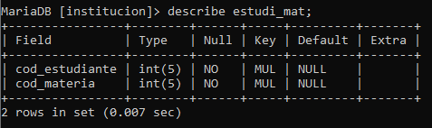 Se debe almacenar un registro de las materias vistas por el estudiante(código de la materia, nombre de la materia) tenga presente que un estudiante puede ver varias materias.