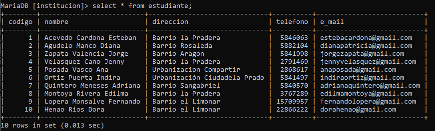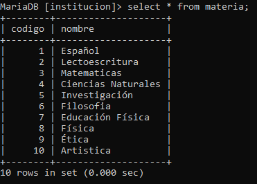 En la base de datos de la institución insertar los datos que se encuentran en el siguiente archivo de Excel: