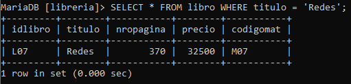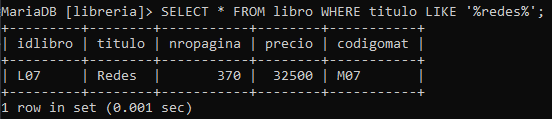 N. Crear una consulta que visualice todos los libros que tengan el nombre de redes.