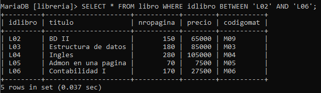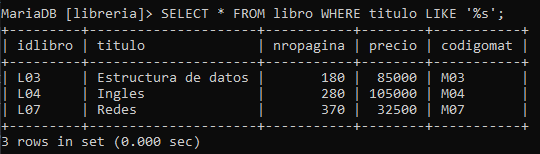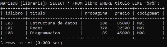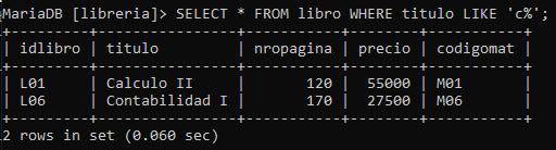 H. Visualizar la información de los libros que en el nombre tenga la letra T
