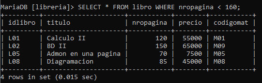 P. Crear una consulta para visualizar todos los libros con número de páginas menores a 160
