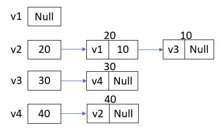 5. Representar el grafo dirigido del ejercicio propuesto dos como una lista ligada de adyacencia: