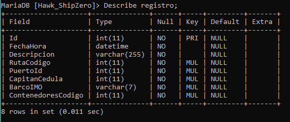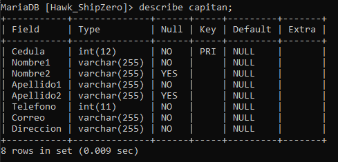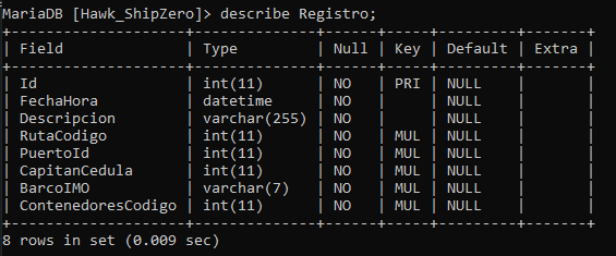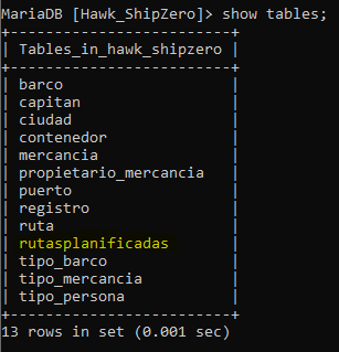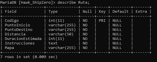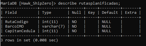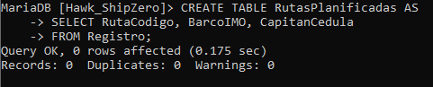 Análisis: Creamos una nueva tabla "RutasPlanificadas" que contiene los campos "Ruta," "Barco," y "Capitán" a partir de la tabla "Registro." utilizando el comando CREATE TABLE AS.