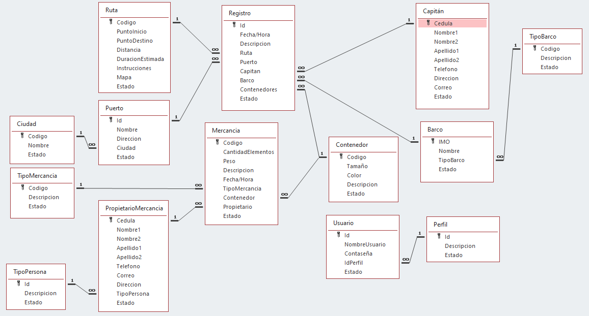Análisis: Esta consulta selecciona los datos de las tablas "Ruta," "Barco," y "Capitan," y los inserta en la tabla "RutasPlanificadas" correspondiente a los campos "RutaCodigo," "BarcoIMO," y "CapitanCedula."