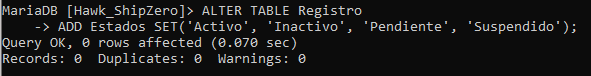 ADD Estados SET('Activo', 'Inactivo', 'Pendiente', 'Suspendido');