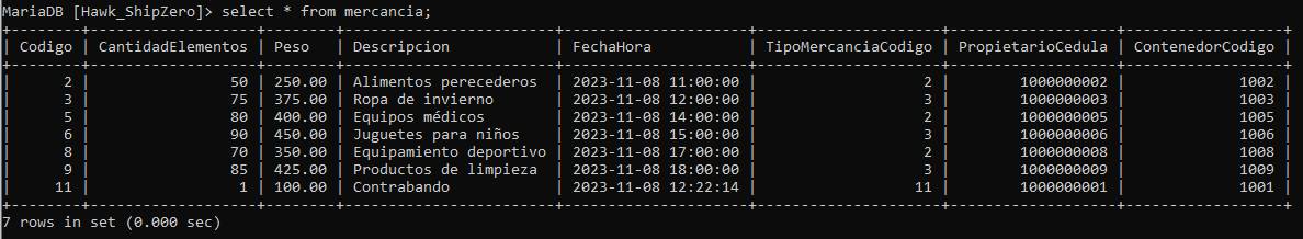 SELECT * FROM Mercancia