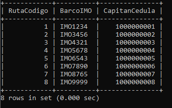 SELECT RutaCodigo, BarcoIMO, CapitanCedula
